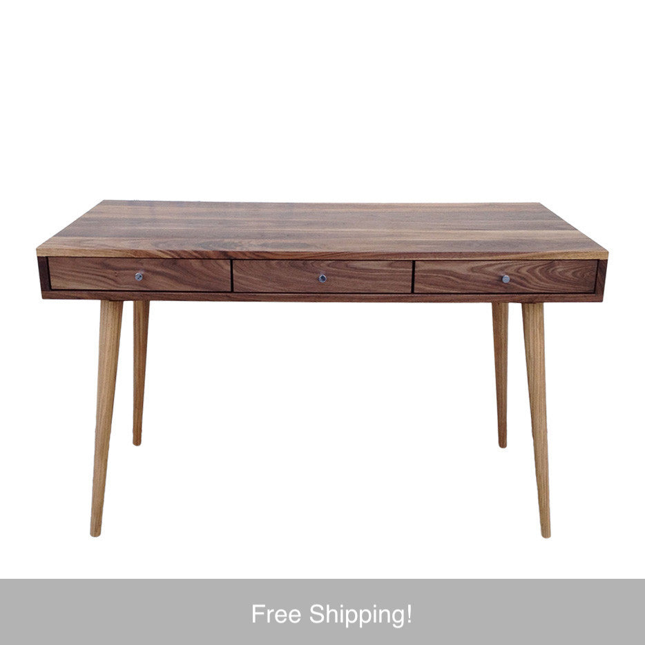 The three hardwood drawers provide ample storage space and ride on soft-close glides to give it that high end touch.  The desks sits on solid walnut or oak tapered legs that bolt in to a heavy wood cleats for sturdiness and longevity.